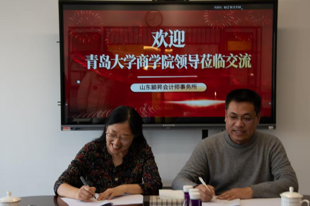 会计学系主任范英杰与山东颛昇会计师事务所负责人袁总共同签署了《合作建设本科教学实习基地协议书》。这份协议不仅是简单的合作文件,更承载着校企双方的郑重承诺与殷切期望。